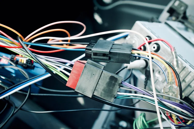 Connects speakers, power lines, control signals and steering wheel buttons.